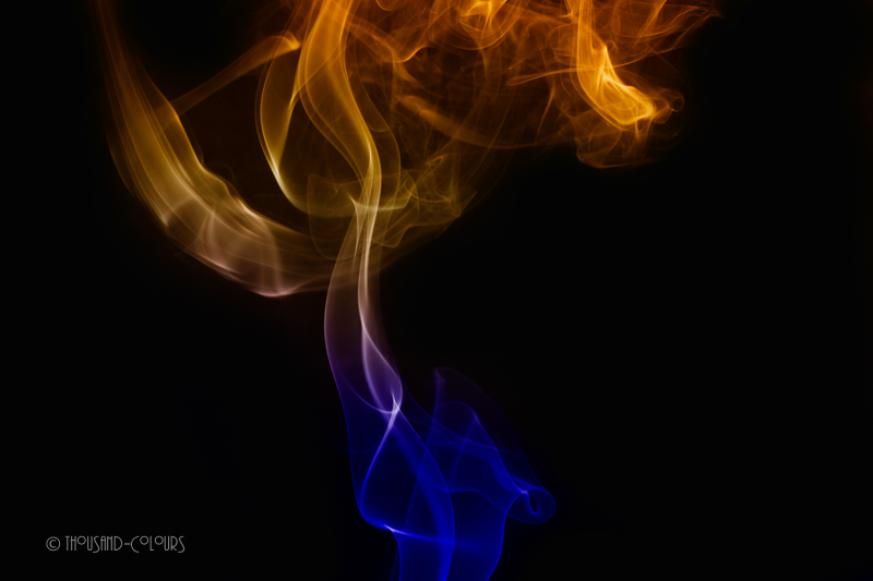 Räucherstäbchen angezündet, Blitz in die richtige Position gebracht und verschiedene Kameraeinstellungen und Objektive getestet … am schwierigsten war es dann aber, den Rauch in die gewünschte Position zu lenken. Viele Fotos waren Zufallstreffer und eben so viele sind im Papierkorb gelandet, da der Rauch nicht das machte, was mir vorschwebte ;-)